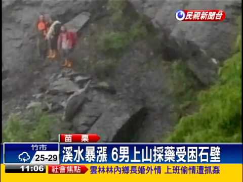 【民視即時新聞】苗栗也傳出人員受困災情!苗栗泰安鄉六名男子,七天前相約前往大安溪上游山區採草藥,原定昨天晚上返家。不料,連日豪雨,溪水暴漲,受困河岸石壁,消防局陸空搶救,終於順利將人救出。